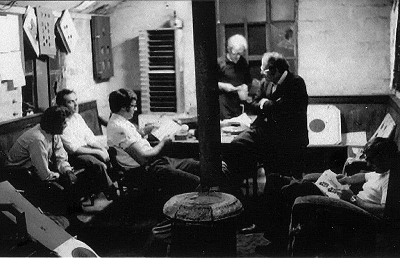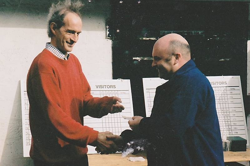 1972 - Pistol was shot from 20 yards on the indoor range. Dennis Bailey on the left, Gary Hellstrom centre and Eddie Childs on the right. Note the wooden boarded windows along the right wall of the range - these were blocked up by Glyn Jones a few years later during a re-furbishment.