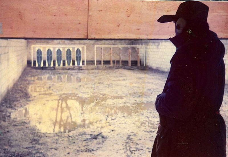 1975 - Making use of the compressor, a set of Turning targets were squeezed into the indoor range and the silhouette targets can be seen on the right.