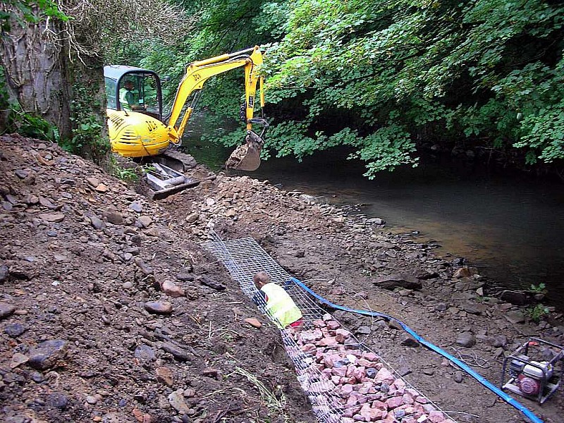 With the planned installation of the gabions to protect the river bank and the stop butt wall now being completed, the opportunity was taken to make a start on the refurbishment of the river range as seen in the final photo above.