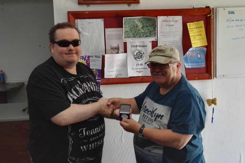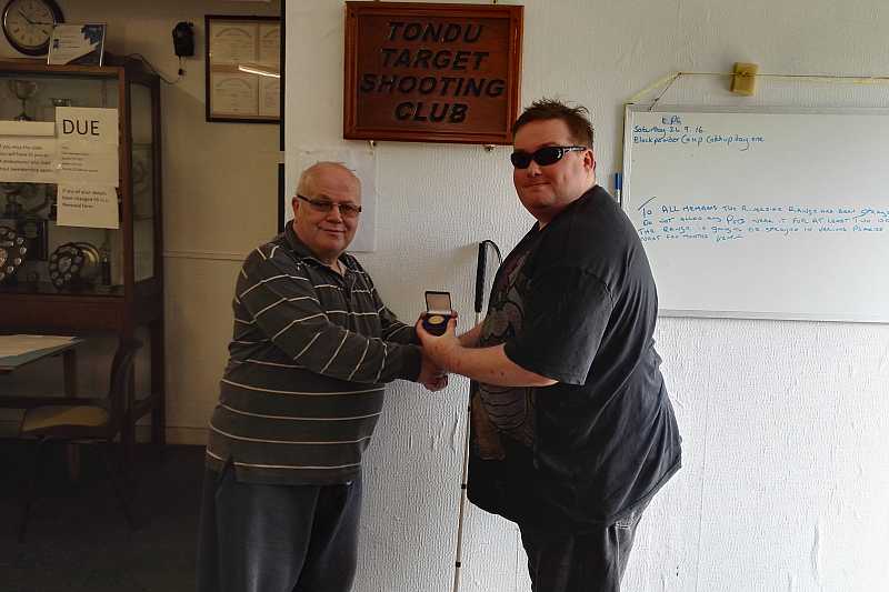 Stuart Clare receiving his medal for second place in the 2016/17 VI winter shoot