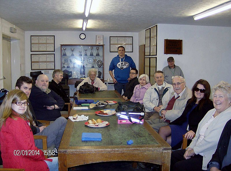 Ken Nash from the National Smallbore Rifle Association explaining the targets to the Bridgend Borough Council Mayor and others.
