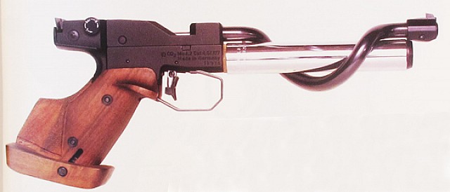 This is an older model of Feinwerkbau, the Model 2, which is operated from CO2 gas. Still a competitive target gun today and the best you could buy in the 1980's - secondhand £100 plus