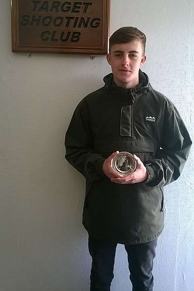 Dylan Roberts and his trophy for winning the Hendon League 25mtr bench rest Air Rifle Division 4, Summer 2014
