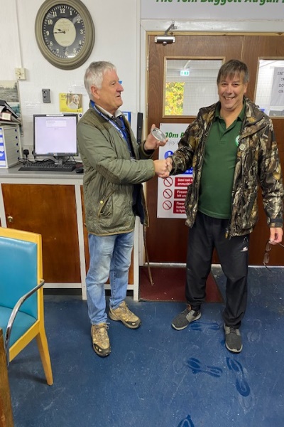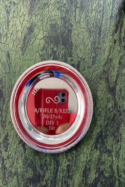 Derek Sainsbury was the winner of 25yd Air rifle benchrest division 3 - award presented by Des Gibson