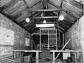 1972c - A set of turning target frames that were originally used for the 1948 London Olympics Rapid fire Pistol event were acquired from Bisley and installed on the river range. Compressed air was needed to operate the turners and this photo shows Bill Phelps and Gary Hellstrom about to start the Donkey engine compressor that was housed in a small shed behind the stop butt wall.