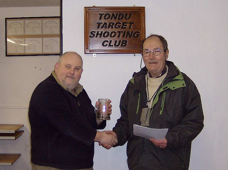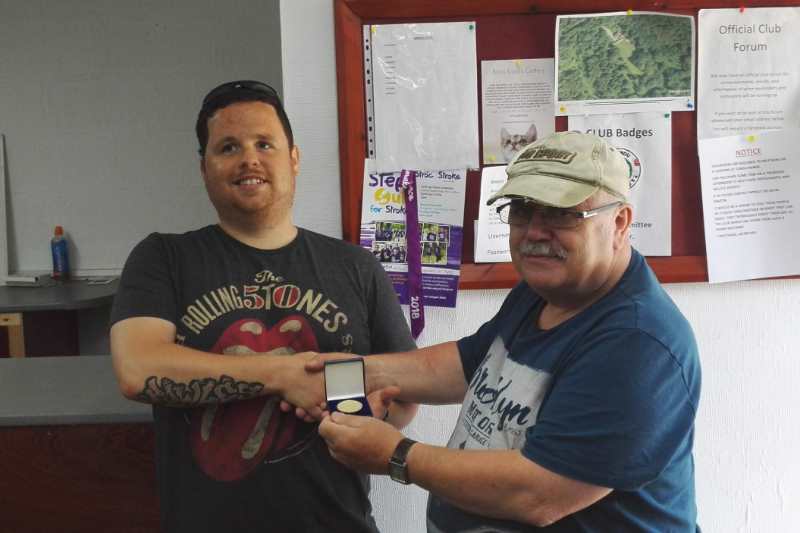 The VI shooters have had some success with winning two gold medals and one silver in the National Postal leagues. Photo is of Kev Martin presenting a gold medal to Stuart Clare.