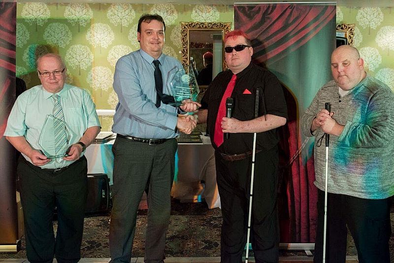 Nice to see that Kev and Gareth have been recognised by BCDP(Bridgend Coalition of Disabled People) for all their work with the VI shooting project. The photo is of Gareth and Kev receiving their awards at the recent presentation dinner with two of our shooters to the right, Stuart Clare and Kerry James.