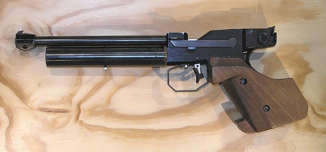 This is an older model of Feinwerkbau, the Model 2, which is operated from CO2 gas. Still a competitive target gun today and the best you could buy in the 1980's - secondhand £100 plus
